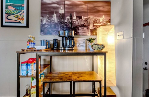 - Coffee Maker (coffee, tea, and powdered creamers provided)