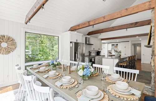 Welcome to Starboard Retreat! With its expansive backyard oasis and close proximity to Craigville and Dowses Beaches, this spacious home is a summer paradise for beach goers and pool loungers alike. Overlooking North Pond, the backyard features a heated swimming pool, hot tub, outdoor shower, grill, patio, and fire pit.