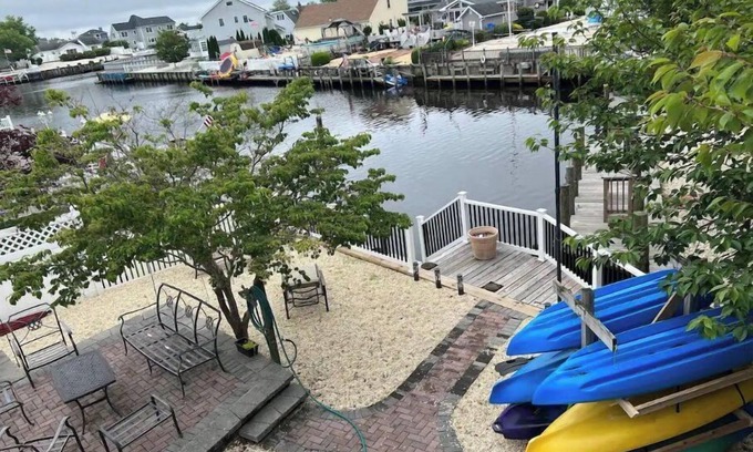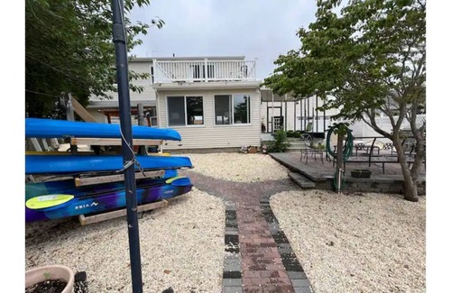 Kick back and relax in this calm, stylish space. Ten minutes to LBI beaches! Sleeps up to 12 people with two bunk rooms and two queen beds. Enjoy the best restaurants, shopping, kayaking, and all the experiences of Lagoon Life! Located 2 miles from LBI, this home is close to beaches and great restaurants and is situated directly on the water. This home also has Kayaks, beach chairs & towels available for guests. The circular driveway can store a boat with a trailer.