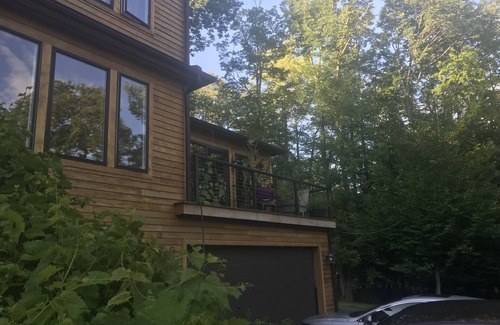 Saranac Escape is perfectly located on the East side of Saranac Lake. Walk to 7 restaurants in one direction, access the wilderness in the other. Just 8 miles from Lake Placid, it's an ideal ski lodge in the winter. The gas fireplace pumps out the heat at the flip of a switch! In the summer you're mere footsteps from Lake Flower, head of the 35 mile Saranac chain of lakes. And the kids are sure to love the pollinator friendly lawn full of monarchs! The front deck is - no guarantee - remarkably bug-free! The spacious back deck features a covered BBQ. The loons and owls are your lullaby at Saranac Escape.