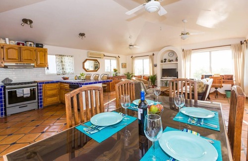 Bienvenidos a Casa Wendt, a beautiful Mexican villa home located in the gated community of La Jolla, San Jose del Cabo. Enjoy the views of Baja and hear the roll of the surf from every room in this large jewel of a vacation rental. The house includes 4 large bedrooms and 3.5 baths and comfortably sleeps 8 people comfortably. Recline in tiled heated pool surrounded by lush tropical landscaping or dine on the terrace using the outdoor grill. Lounge in the air conditioned rooms and watch Netflix or enjoy some surf lessons at Costa Azul. You will find that Casa Wendt provides everything you need to make your trip to Baja perfect