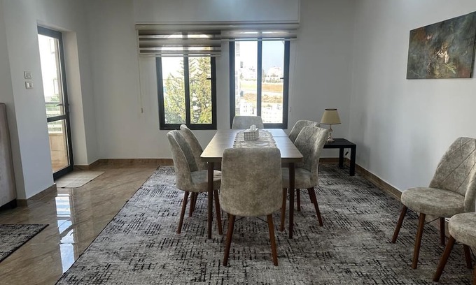 Welcome to this peaceful apartment home in Amman. This delightful home away from home features 3 bedrooms with 2 king beds and 2 twin beds, perfect for families. Very well-equipped. Free underground parking. Elevator, 24 hour concierge available by phone. You'll find amenities like a washing machine, AC, WiFi, and more to make your stay pleasant and convenient. With 3 bathrooms equipped with bidets, hair dryer, and shower, you'll have everything you need for a comfortable stay. We go out of our way to make your stay great. Shopping, mosque, and hospital within 5 minutes.