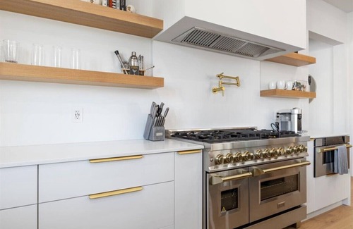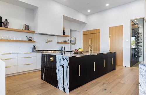 This modern, stylish place to stay is perfect for group trips. The home is brand new construction, with 5 bedrooms in the main house plus a casita with an additional bedroom. The decor is luxurious and stylish, with amenities including a pool, hot tub, large in-ground fire pit, putting green, sport court, and an outdoor kitchen ideal for barbecuing. There are three separate large living spaces with plenty of room to spread out. Located less than five minutes from Kierland Commons and the Quarter.