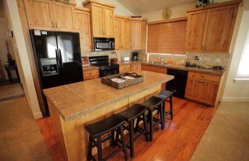 3600 square foot home with large family rooms on two levels, there is plenty of room for families and friends to spread out and enjoy. Dining table for 8 with 4 stools at the kitchen island and a well outfitted kitchen. Meal times are a joy! Add to your joy by walking out to the deck to take in the view. This is a spectacular valley.