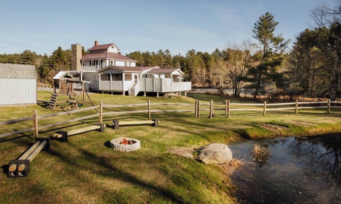 Escape to Swan Pond Cabin, a spacious retreat in Swan Lake, NY, perfect for large groups with 5 bedrooms and 3.5 baths. This inviting cabin offers room to relax, featuring a cozy, clean interior and thoughtful amenities. Gather around the firepit beside a picturesque pond, or unwind in the hot tub under the stars. Located near charming towns, it’s an ideal base for exploring local attractions. Discover tranquility and make lasting memories at this scenic hideaway.
