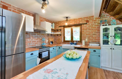In the small village of Mo??enec, not far from Novi Marof, lies this charming holiday home surrounded by beautiful nature. The interiors are furnished with a combination of modern and restored old furniture, which gives them a special charm. The house is equipped with everything needed for a pleasant stay. Relax in the pool and enjoy the beautiful view of the forest. The spa area with sauna and whirlpool can be used by arrangement with the host.