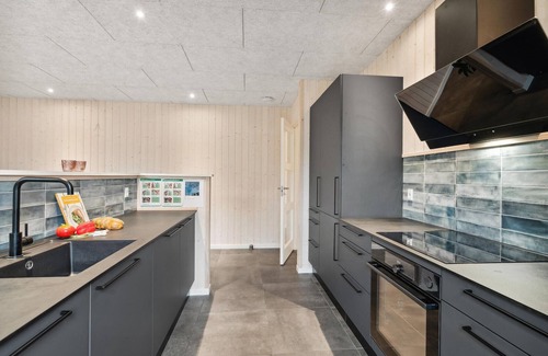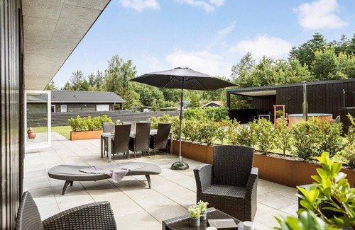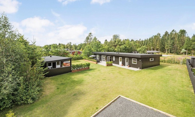 This beautiful and inviting vacation home welcomes you to Virksund. The many square meters, the beautiful furnishings and the fantastic facilities will ensure you have a successful extended family vacation here. The main house and the annexe promise you plenty of bedrooms for quiet nights, but also comfortable living spaces that invite you to chat together in the living room, make magic in the kitchen or play and have fun in the activity room. You can also relax in the sauna or bathe in the outdoor Finnish wooden bath. You can look forward to spending time outdoors playing soccer together, having a barbecue or simply enjoying the sun.