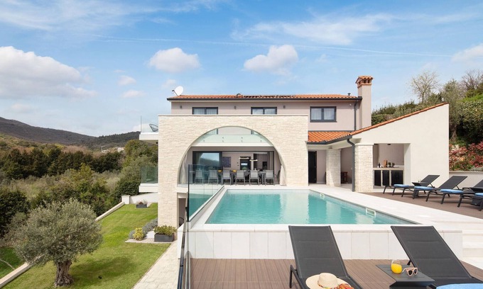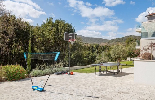 This modern house in Sveta Marina welcomes you with a fantastic location right by the sea.