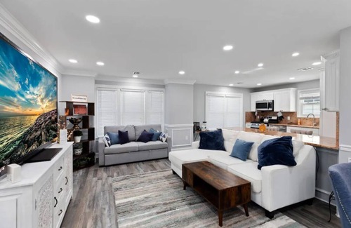 This beautiful brand new house in the crest on Rosemary St only 1/2 block the beautiful bay and 2 short blocks to the free Wildwood Beach. The house has 5 bedrooms with 1st bedroom on the first floor. Here you will find PacMan arcade game. Upstairs you will find 4 spacious bedrooms. Everything is brand new. This is a new listing and no one has ever rented this beautiful house before. There are a total of 3 Smart TVs with Hulu/Youtube premium. There are 2 sofa beds in the living room.
