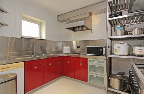 This is a very large space with it's own Gym / Swimming Pool and Solar hot water tub (dependant upon the sun) complete with Snooker and ping pong tables. There is a Thai kitchen additional to the main kitchen. This property is the biggest available on Phratamnak Hill and is very central. We have fiber optic connected wifi.