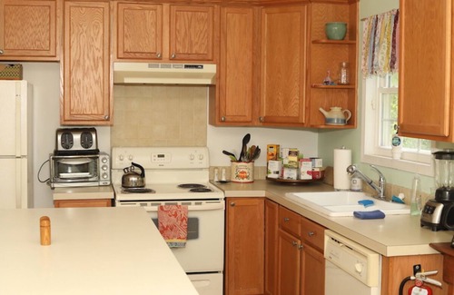 Inside, the home boasts a fully stocked kitchen, complete with a stove, oven, refrigerator, and dishwasher, allowing you to easily prepare delicious meals.