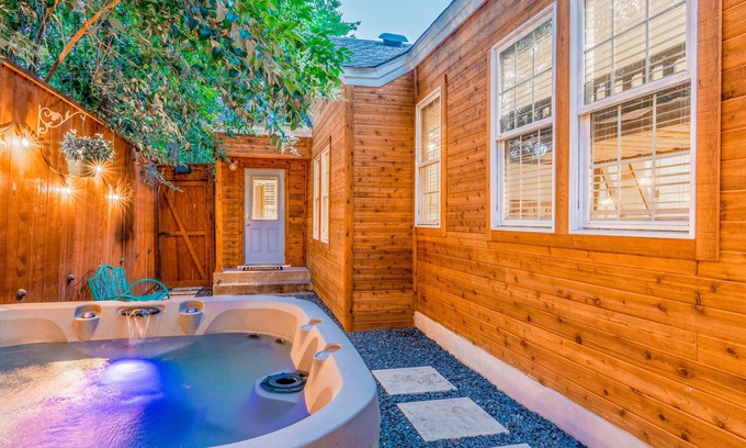 Another Gorgeously updated 512Retreat Downtown Austin getaway less than 2 mins from UT campus! Our Space was designed for group gatherings with 2 kitchens, full bar area in guest house, hot tub, & 3 full baths. We are 5 mins from 6th street! There are grocery stores, restaurants, and coffee shops within walking distance. We are also next to Hancock Golf course.