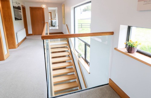 Amenities: Oil central heating with ground-floor underfloor heating and 2 x open fires. Electric oven and gas hob, microwave, kettle, toaster, fridge/freezer, washing machine, tumble dryer, Smart TV, TV, WiFi. Fuel and power inc. in rent. Bed linen and towels inc. in rent. Off-road parking. Front lawned garden and balcony with furniture. Sorry, no pets and no smoking. Shop 3.2 miles, pub 0.9 miles, beach 0.5 miles. Note: There are a number of steps throughout the ground floor that may not be suitable for guests with limited mobility, please take care. Note: This property is positioned at the top of a steep hill so a car is recommended