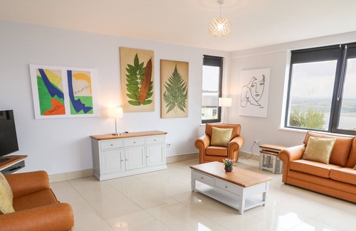 The living areas in the property consist of kitchen with an electric oven, gas hob, microwave, kettle, toaster and fridge/freezer, a utility with a washing machine and tumble dryer, a dining room with seating for six and an open fire as well as a sitting room with a TV and an open fire. The bedrooms consist of a family room with king-size and single with TV, balcony and en-suite bathroom, a family room with king-size and single with en-suite bathroom and two king-size rooms, along with a bathroom and a ground-floor shower room. Outside, there is a a front lawned garden, a balcony with furniture and off-road parking. Within 3.2 miles, you will find a shop, and within 0.9, a pub. Please note that this is a non-smoking property. WiFi, fuel, power, bed linen and towels are all included in the price. Add a touch of luxury to your escape to Ireland with a stay at 5 Harbour View. Note: There are a number of steps throughout the ground floor that may not be suitable for guests with limited mobility, please take care. Note: This property is positioned at the top of a steep hill so a car is recommended. Please note: This property does not allow house parties as it is in a residential area.
