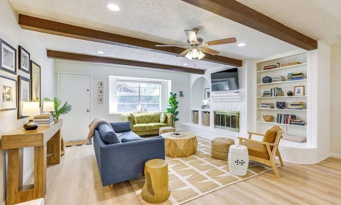 Experience the perfect blend of suburban tranquility and urban convenience when you stay at this Humble vacation rental. This 3-bed, 2-bath home features an updated interior, a private fire pit, and easy access to several community amenities, including a playground and a pool with a water slide. Looking to explore? Top attractions like Old MacDonald's Farm, Alexander Deussen Park, and the Houston Zoo await!