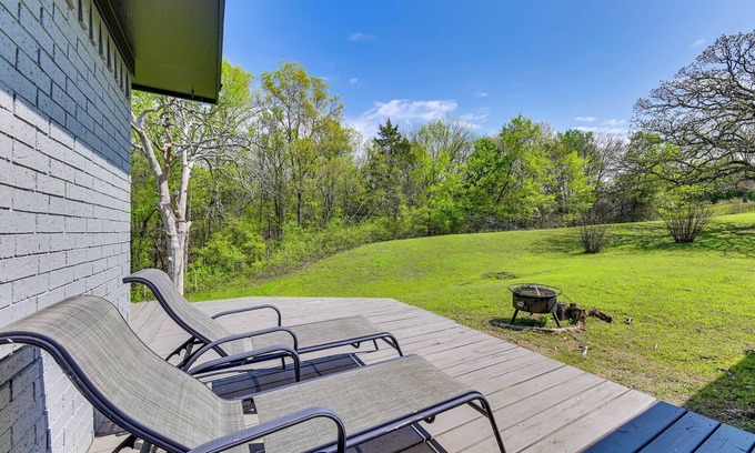 Whether you're here for small-town charm, outdoor adventure, or a little peace and quiet, you’ll find the perfect home base for your Tishomingo getaway at this 3-bed, 2.5-bath vacation rental. Sip your morning coffee on the furnished deck, then explore the downtown district, cast a line in the Blue River, or venture to Lake Texoma. As evening falls, gather around the fire for s’mores and captivating stories!
