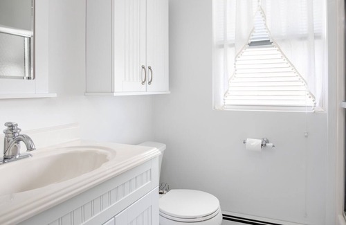 Adding comfort to your stay are two updated bathrooms- one of the first floor and one on the second. You'll be comfortably cool during your stay due to window air-conditioning units in all three bedrooms and the living room.