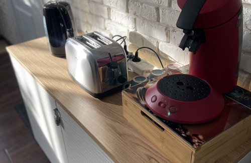The kitchen is equipped with a stovetop and a refrigerator, as well as a coffee maker, an electric kettle, and a microwave. Enjoy the free WiFi and TV. Bathroom amenities include a hair dryer, towels, and toilet paper. And because there's access to laundry facilities, you can go a bit lighter on your packing. Other amenities at this 1-bedroom, 1-bathroom rental include a sofa bed, bed sheets, heating, and a dining table.