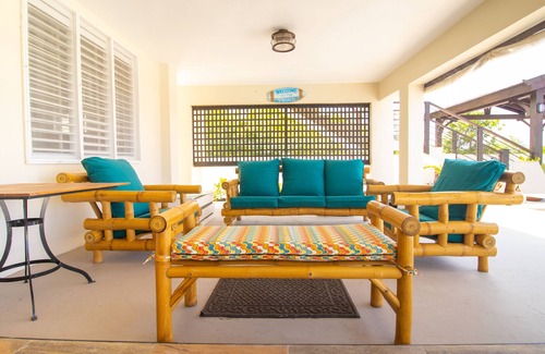 4 b/rooms 4 baths (6 beds) - 8 - 10 guests sharing. Bedroom #1 has 1 King bed; #2 - 1 quuen bed; #3 - 2 queen beds; #4 - 2 full beds. Bedrooms have air condition units & ceiling fans. Property has open concept living spaces, private parking, a private pool with upper and lower sun decks, and the lovely beach is less than 5 minutes walk away, providing a truly relaxing experience. Catered by housekeeper/cook who will prepare meals at guests' request. Ingredients for meals may be purchased by guests at nearby grocery stores and green groceries nearby, and our staff will prepare the delicious meals.