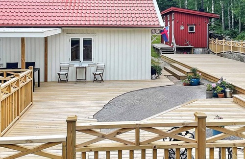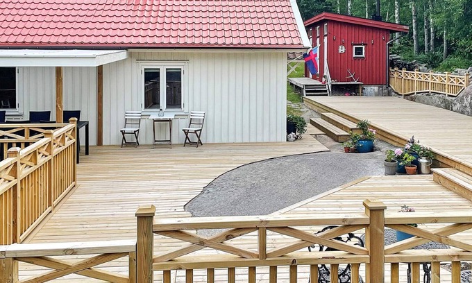 Welcome to this cozy cottage close to Brofjorden's surging sea and salty baths. Here you live very comfortably in beautiful natural surroundings. From the cottage, it is also close to Lysekil and Brastad with the surrounding many bathing beaches, golf courses and other excursion destinations worth visiting. The accommodation is also a perfect starting point for those who want to practice outdoor life, popular in the area is to challenge the mountains in the form of rock climbing, it is not far to some of Bohuslän's best mountains or to explore the sea environment outside both from above and below the surface, feel free to bring or rent a kayak. In the immediate area there are several nice walking paths and paths, including the popular coastal path passing nearby where you can hike and maybe meet one of the forest's animals or pick your own mushrooms or just enjoy the view of the sea and the nature close to the sea. In the area there are also petroglyphs worth visiting. The cottage is nicely situated surrounded by a fenced garden with generous grass and balcony areas. Via a gate you reach the large balcony areas that surround the cabin's entrance. On the inside of the cabin you are greeted by a large hall where the cabin's washing machine is also located. From the hall you enter the kitchen with stove, fridge/freezer, microwave, coffee maker and a warming wood stove. From the kitchen area you enter the cottage's cozy living room with dining room furniture, sofa bed, TV and a warming stove. The cottage has a large bedroom with double bed, bathroom with shower. The cottage's WC with electric toilet is in the annex building a few meters from the cottage's entrance, in the annex there is also a bedroom with a bunk bed. Next to the cabin there are large balcony areas, some of which are covered with summer furniture and a barbecue, a perfect place for grilling and enjoying meals, discussing the day's adventures or watching games and play on the large lawn outside. 2 bicycles are available to borrow for those who want to take a ride in the local area. Lysekil, which is popularly known as "The City by the Sea", is located at the far end of the sea belt. Experience the fantastic feeling of freedom that the sea gives us on hikes on nature reserves and paths with fine smooth red granite rocks that are unique in Bohuslän. During the summer season, many concerts with famous artists, sing-alongs in the park, etc. are offered. Several nice shops with a selection for different tastes. It is also a pleasure to ride the small train around Lysekil, during the trip you also get a bit of history about Lysekil or why not walk through the older part of Lysekil from the 17th - 19th century. Cozy buildings along the narrow street towards Norra Hamnen, which in recent years has become a beach promenade. Pinneviken's fine bathing area and Stångehuvud's nature reserve known for its special light which has made the area well-visited by photographers, among others, here you can experience fantastic sunsets reflected in the sea. Take a boat trip across to the other side of the Gullmarsfjord and wander the winding streets among Fiskebäckskil's sea shacks and captain's villas. For those interested in golf, the club can be swung on Holma's fine 18-hole course. Welcome to a pleasant stay in Brastad and the surrounding area!