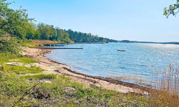 Nice, seaside holiday home where you live comfortably in Äskestock in the Västervik Archipelago with a view of the sea. Here you will have a wonderful semester and can enjoy the large garden where you have sun loungers and a variety of garden groups. You have a large, nice balcony with a magical view of the sea and the garden. It is only 130m down to the sea, and 400m to the nearest sandy beach. There is a rowing boat which you can enjoy exploring the archipelago. The house has a large beautiful living room with a sea view where there is a dining area and a large sofa group in front of the beautiful fireplace. In the kitchen there is a dining area and most things you may need to prepare your meals. There are three pleasant bedrooms, one with a double bed, the other with two single beds that can be moved together if desired. The third open with a curtain has a family bunk bed. You have a bathroom with wc, sink, shower. There is another beautiful sandy beach 800m away. You have 1800m to the popular restaurant Östra Skälö, here you can enjoy a good piece of food, a glass of wine or a cold beer if desired. 800m from the house there is a nice activity area with an outdoor gym, soccer field, playground, beach volleyball court, boules court and barbecue area. You have a number of beautiful pearls along the coast such as Blankaholm. You have 25 km to the nice summer town of Västervik with its wide range of restaurants, cafés and shopping. Boat trips out into the archipelago also depart from here. At Lysingsbaden there is a water park and a large swimming area with a restaurant. Gränsö Castle has a spa where you can enjoy a few hours in beautiful surroundings. Not rented out to youth groups Smoking not allowed Bring your own wood when using the fireplace