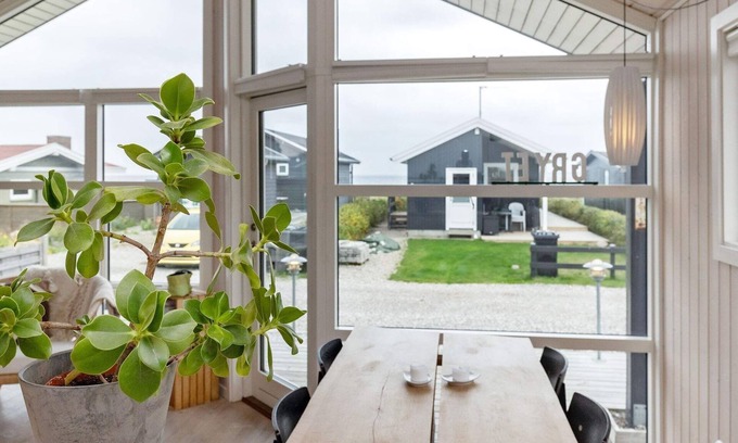 A holiday cottage only approx. 45 metres from the sea. Enjoy the view of the water both from the house and the terrace. Combined living and dining room with kitchen and a bright decor.