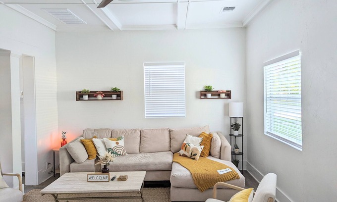 With a perfect 5-star rating, we're proud to offer a unique blend of historic character and modern comforts. We invite you to discover our curated space, from the stunning natural light to the private backyard oasis.