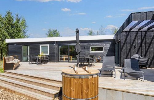 9.1 miles from Jesperhus Resort in Øster Assels, 5 star holiday home in Øster Assels-By Traum provides accommodations with free Wifi and access to a sauna, hammam, and steam room. Outdoor seating is also available at the vacation home. Providing a terrace, this vacation home also provides guests with a cable TV, a well-equipped kitchen with a dishwasher, an oven, and a microwave, as well as 2 bathrooms with a hot tub. The accommodation is non-smoking. You can play billiards at 5 star holiday home in Øster Assels-By Traum. Midtjyllands Airport is 47 miles away.