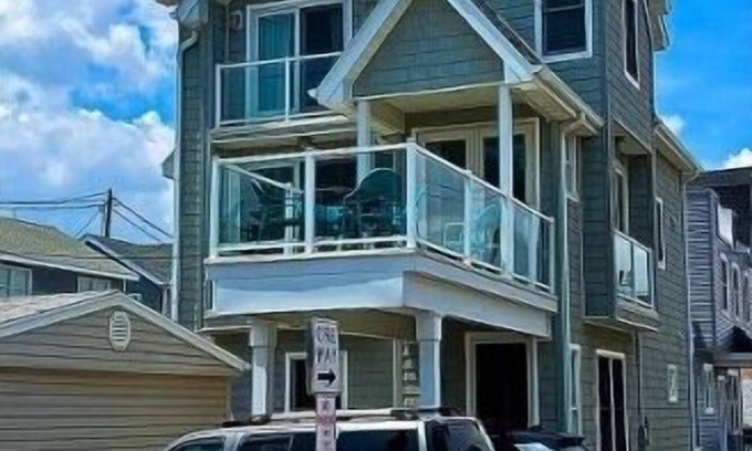 (for more information or to get a hold of the owner go to judybkahnatgmail) This 14-year-old three-level contemporary directly across from the beach and ocean accommodates 1-2 families easily. You will step out of your house, take a few steps, and find yourself on a pristine life-guarded beach! There is wireless Verizon Fios Gigabit internet which super-high speeds throughout the house. This beach home is appointed with 100% brand new upscale furnishings from Pottery Barn, Crate and Barrel, West Elm, and World Market. No expense has been spared in remodeling this home and transforming it into a dream beach house. Lower level includes: large family room with couch and leather recliner, television, table and chairs; brand new spa bathroom with oversized shower and washer/dryer; 2 bedrooms with queen beds.