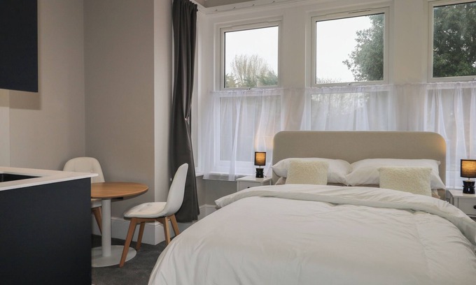 5 The Cuckmere, a first-floor apartment consists of a double bedroom, and a studio-style layout including a double bed, a kitchen with a microwave, fridge, toaster, kettle, and a dining area with TV, along with a shower room. Outside, there is ample of roadside parking. Sorry, no pets and no smoking. Shop 0.1 miles, pub 0.2 miles, beach 0.6 miles. WiFi, fuel, power, bed linen and towels are all included in the price. 5 The Cuckmere makes a delightful base for an escape with family to Sussex. Note: This property does not have a garden. Note: There is a staircase up to apartment and may not be suitable for people with limited mobility. Note: This property has a minimum of 3 night stays only.
