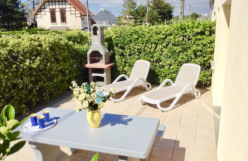 Private Garden surrounded by a lively and persistent hedge, very well fenced for the safety of children and animals, large tiled Terrace with its Garden furniture, Parasol, charcoal Barbecue and Deckchairs.