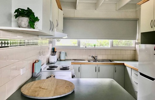 Nestled amongst trees with a beautiful view of the bay this original 50’s home is sure to delight. Compact and quaint the home embraces you with everything you need for your stay right at your finger tips .