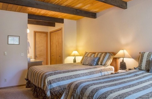 Just steps from Sage Springs Spa, 51 Tennis Village is the perfect basecamp for exploring Sunriver and beyond. This 1,580 sq. ft. home is enjoyable for up to 8 guests with its 2 bedrooms and 2 bathrooms.Inside this lodge-style condo you will find spacious kitchen, living, and dining areas with vaulted ceilings, wood paneling, and beam accents.