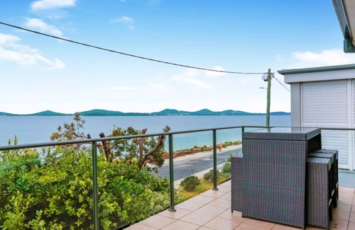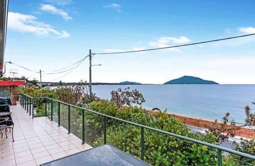 This superb home is located right on Jimmys Beach. Breezy open plan living spaces that flow to the outdoors Wide front deck offers easy entertaining areas. Four generously proportioned bedrooms, all with built-ins. Main bedroom has access to balcony and beach views Ducted reverse cycle air conditioning through out, Separate air conditioned Games room with billiard table. Tandem lock-up garage with internal access. Walking distance to Hawks Nest village, shops and eateries Sleeps 10 (2 singles, 1 single bunk, 1 trio bunk, 2 kings) This property does not have WIFI - LINEN IS NOT SUPPLIED