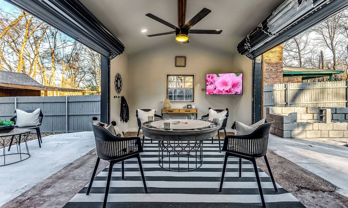 “The Onyx at Lake Texoma” will have you relaxed within minutes of your arrival. Take a load off at this peaceful retreat - in the summertime play a family game of football in the backyard and in the winter snuggle up and sip some hot cocoa with your loved ones. Spend time reconnecting with family and friends, away from the city and near the lake. This comfortable home is equipped to be the perfect backdrop for those small to medium reunions, sleeping up to 14 guests. Don’t forget to BBQ for dinner! Or, if you prefer, cook in the beautiful kitchen with plenty of counter space or venture out and enjoy one of many local restaurants.