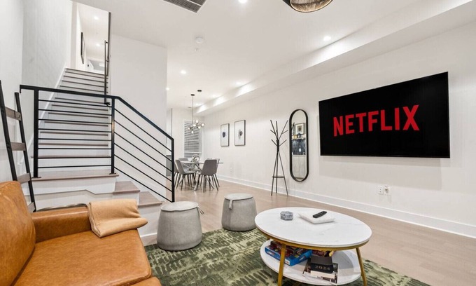 ★ TWO LIVING ROOMS & 2 KITCHENS ★ Each floor features its own open-plan living room and full kitchen: • Comfortable seating and Smart TVs • Kitchens fully equipped with stainless steel appliances, Keurig machine, cooking basics, and more • Dining area with seating for 6