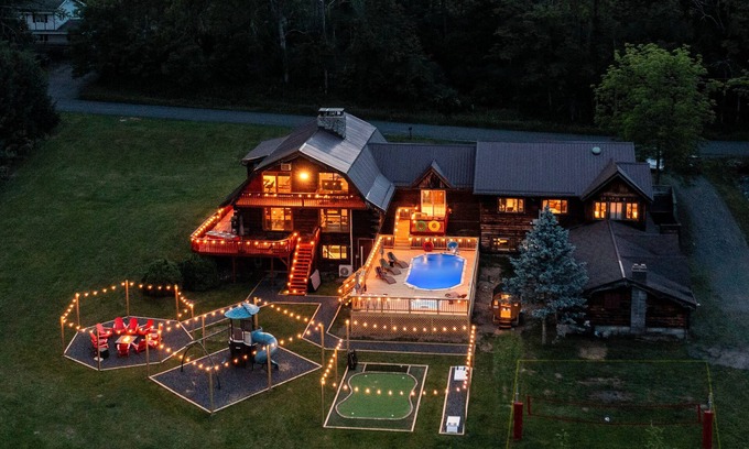 5BR Lux Log Mansion w Legendary Amenities & Pool! is located in East Stroudsburg. 5BR Lux Log Mansion w Legendary Amenities & Pool! provides accommodation, featuring Bedding/Linens, Entertainment, Kitchen, among other amenities. This Cabin features Bedding/Linens, Entertainment, Kitchen, to make your stay a comfortable one.
