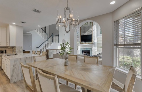 5BR Oasis w/Pool Steps from Lake Ray Hubbard is located in Rowlett. 5BR Oasis w/Pool Steps from Lake Ray Hubbard provides accommodation, featuring Bedding/Linens, Fireplace/Heating, Kitchen, among other amenities. This House features Bedding/Linens, Fireplace/Heating, Kitchen, to make your stay a comfortable one.
