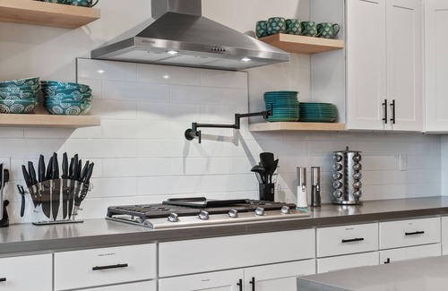 - Chef's kitchen with high-end appliances, including large sink, full-sized refrigerator with touchscreen, dishwasher, cooking range, large microwave, coffee machine, toaster, espresso, instant pot, and all necessary utensils and cookware