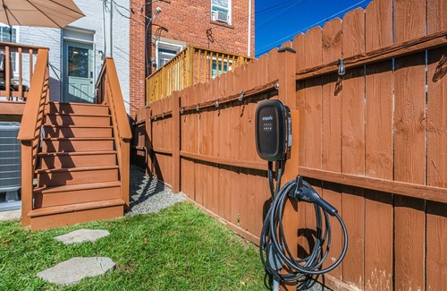 Enjoy outdoor living in the backyard, which includes a deck with a sectional couch, an umbrella, and a Blackstone grill—ideal for BBQs. The home also offers one off-street parking spot and a Level 2 EV charger (included in cost of reservation). Free street parking is also available. Ideal amenities for a commuter, a couple's retreat, or a fun family weekend!