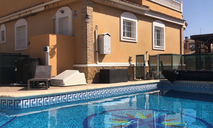 6/8 person chalet with private pool, heated on request is located in Monforte del Cid. 6/8 person chalet with private pool, heated on request provides accommodation, featuring Internet, Laundry, Air Conditioner, among other amenities. This Villa features Internet, Laundry, Air Conditioner, to make your stay a comfortable one.