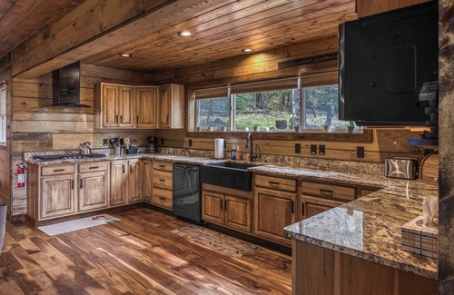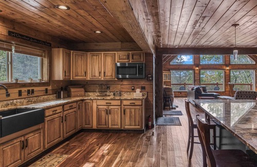 - Open layout with wood floors and ceilings for the perfect mountainous feel