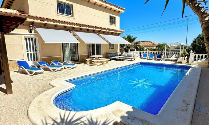 6 BED SLEEPS 12/14 WIFI -AIR CON- POOL TABLE- SKY TV is located in San Miguel de Salinas. 6 BED SLEEPS 12/14 WIFI -AIR CON- POOL TABLE- SKY TV provides accommodation, featuring Internet, Laundry, Pool, among other amenities. This Villa features Internet, Laundry, Pool, to make your stay a comfortable one.