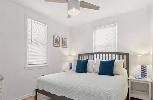 Fully renovated top to bottom. 6 bedroom 2 full bath house with awesome Bay views for catching Sunsets. This house will not disappoint. Relax on the screened porch on summer nights with new polywood deck furniture. Walk to restuarants, market & butcher. No need to take a cooler to the beach!!!. This house is a 2 minute walk to the best beaches or the bay beach to launch a paddle board . 8 beach badges & 8 beach chairs. .Plenty of off street parking. Large outdoor shower & dressing area. All mattress bedding & furntiure are new 2022 season. Side deck for eating outdoors complete with new grill. TENANTS DO NOT HAVE USE OF GARAGE.