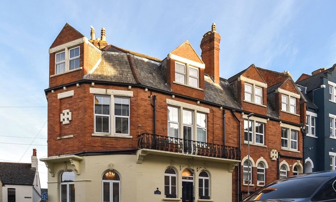 Bathroom: Bath With Shower Over, Heated Towel Rail, Toilet. Gas central heating, electricity, bed linen, towels and Wi-Fi included. Cot available. Welcome pack. On-road parking. No smoking.. Welcome to The Swanage Beach House, a wonderful holiday home nestled just steps away from the pristine golden sands of Swanage Bay. This stylish residence offers a perfect fusion of elegance and comfort, providing a luxurious retreat for your holiday getaway. With six bedrooms and seven bathrooms, it’s an ideal celebration home for families and friends alike.