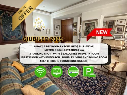 6 people, 3 parking spot, balconies, Metro B is located in Rome.