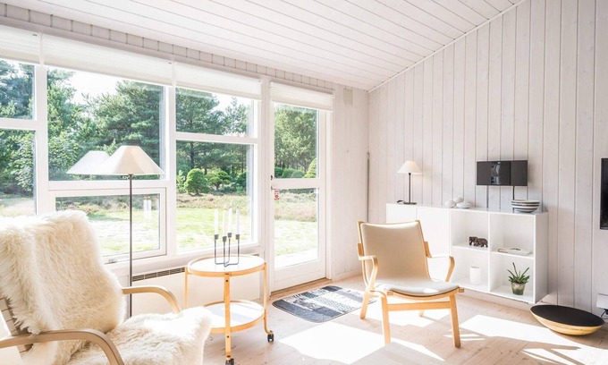 NO YOUTH GROUPS Even when you drive into the grounds of the cottage, you get the feeling that this is a very personal house. The plot alone of about 2700 m2 is a chapter in itself with trimmed trees, and beautiful & quot; carpets & quot; of heather as well as a lot of cozy nooks and swings for the kids. Quite simply a location and surroundings that make you feel comfortable as soon as you arrive. Inside the house you will find a super nice kitchen in open connection with the cozy living room. From the living room there is access to a nice terrace, where you can enjoy the barbecue and enjoy the view of the very well-kept plot. In the house there are three good bedrooms, 2 with double beds and one with single beds and a nice bathroom with shower. The house also has skylights, which makes it a nice bright house to enter - quite simply a house for the family who wants a house with personal decor and which puts quality first. Free final cleaning!