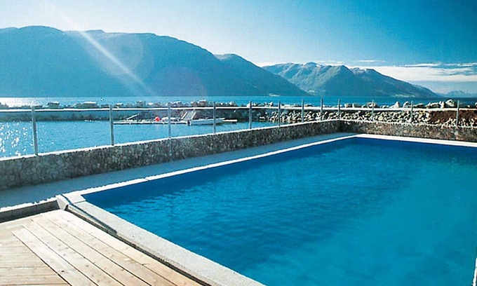 Luxury holidays with swimming pool, directly by the fjord surrounded by a fantastic fjord and mountain landscape. Great holiday apartment, living room with leather sofa, sound system, and large TV with many TV channels. High quality kitchen: Cooling drawer, wine cooler, ice maker and induction hob. From the living room and the master bedroom, there are large sliding doors to the terrace. Folding single beds with quality mattresses. The master bedroom has tiled bathroom and Geberit WC with flush and hair dryer. In front of the holiday apartment there is a lawn and a sheltered beach. 4,000 sqm common area for ball games, sandpit and play equipment. Communal outdoor 50 sqm swimming pool, open daily at 12-18.00, between 20.6-5.9. Temperature 20-26 degrees, weather dependent. On request, a barbecue hut and whirlpool can be rented. Good salmon river, Eira, 22 km. Trout Lake Målsvatnet, 9 km. 5-10 min. by boat to some of the best fishing spots in Norway. Fish cooking place in own building. The boats are for rent in the private marina. For rent, booked at the same time as booking the apartment: 1 x 16 foot boat with 15 HP engine 1 x 21 feet Øien 620F with 50 HP Suzuki 4-stroke engine, chartplotter / gps / sonar 1 x Benetau 680 with 115 hp engine, gps / echo sounder / chart plotter For companies that want to order this unit or one of the others the owners offer, please either contact the booking or post@danferie.no Wet card requirements for kayak rental.