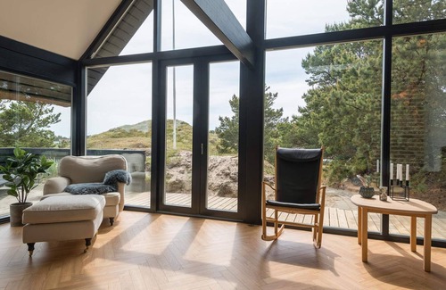 Newly renovated beautiful and charming cottage on a beautiful dune plot with a view in Rindby on Fanø. The ground floor is nice and airy furnished with a new kitchen and dining / cozy living room with wood burning stove and heat pump as well as direct access to beautiful terraces. A brand new bathroom and 2 bedrooms. The 1st floor contains 2 lovely bedrooms with double bed (1.40), 1 room with 2 beds, a beautiful and charming extra living room with TV with nice views over the whole area and with sea view. Here is plenty of space for 6 people and all possibilities for a good holiday on Fanø on the West Coast in a super nice cottage with a really good location.