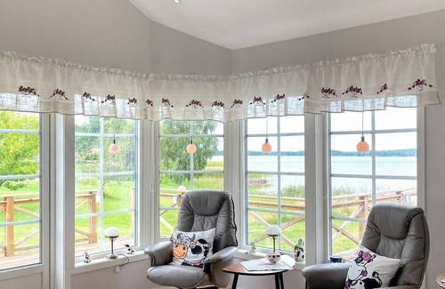 Welcome to stay in a nice house with a lake plot, near the beautiful town of Hjo. The house is located at the bottom of the small road next to Mullsjön with a large lawn with fruit trees and the lake just below. Enjoy beautiful sunsets, warm days in a quiet child-friendly family area with some summer cottages and houses around. The accommodation is suitable for those who want to live in a quiet environment, enjoy swimming and wonderful excursions. Perfect for families with children, an elderly couple or you in company who want to experience nice environments, bathing places, lake Vättern and Mullsjön as well as the summer town of Hjo. The terrace goes around the whole house where you can sit and sunbathe or barbecue in the evening. You are welcomed into a bright hall with two smaller bedrooms to the left. Both bedrooms each have a bunk bed. The house is brightly furnished with homely décor and style. The kitchen and living room have an open floor plan with magnificent views towards the lake. In the kitchen there is a dining area with space for 4-6 people, dishwasher, fridge / freezer, stove with oven. In the large living room stands a large sofa with a table. Adjacent to this room is a small smaller room with TV corner. The sofa is a sofa bed of 140cm wide. Next door is a nice extension that was built in 2017 with great light, spotlight on the ceiling and with comfortable armchairs. In the garden there are apple trees and plums you are welcome to pick and eat. Below the house is a public place where people roam to go to the bathing area. You can swim here but the bottom can be a bit dingy. The larger bathing area is just under 1km from the house. There are bathing jetties, a sandy beach and it is shallow. There are also swings for the children. In the area there are fish-rich streams and lakes where a fishing license is required. The accommodation is not for youth groups under 25 or for companies. Hjo is called the wooden town by Lake Vättern. Here you can walk on nice cobbled streets, eat ice cream and check out handicrafts. The nature reserve Hjoåns Dalgång is beautiful with its nature, lush and green path. For those who like to fish, you should go to Hökensås and plenty of berries in the forests. Here you will enjoy yourself excellently. Welcome!